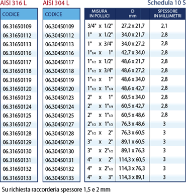Art. 501 - Riduzioni AISI 316 L e 304 L
